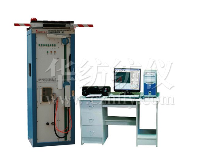 YG023B-Ⅲ型全自動單紗強力機,主機架采用柜式框架結構,測試速度快,動作平穩可靠,測長精度高。電器控制部分主要由進口的伺服電機和驅動器、編碼器及高精度傳感器,聯想計算機,17寸液晶屏顯示器,噴墨打印機.